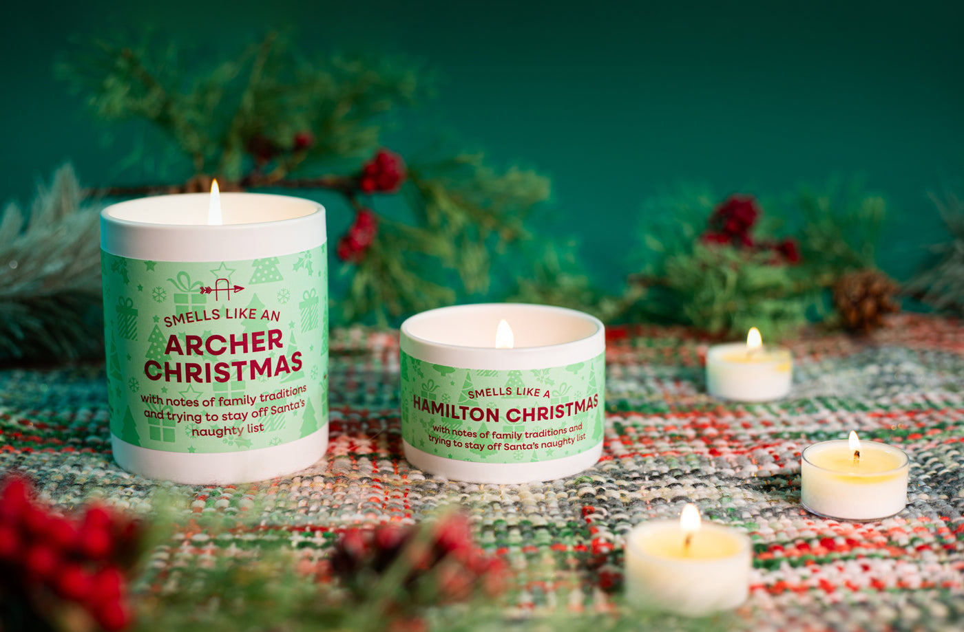 Personalize your own custom Christmas candle featuring YOUR family's last name!