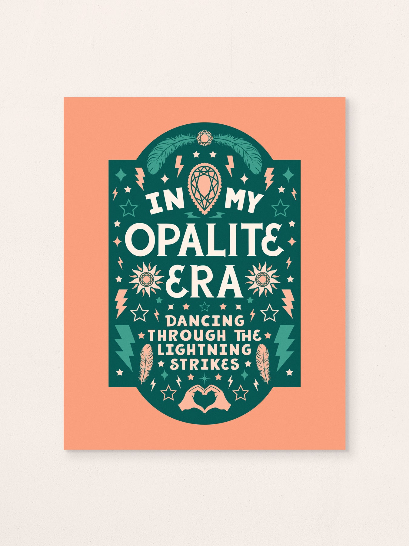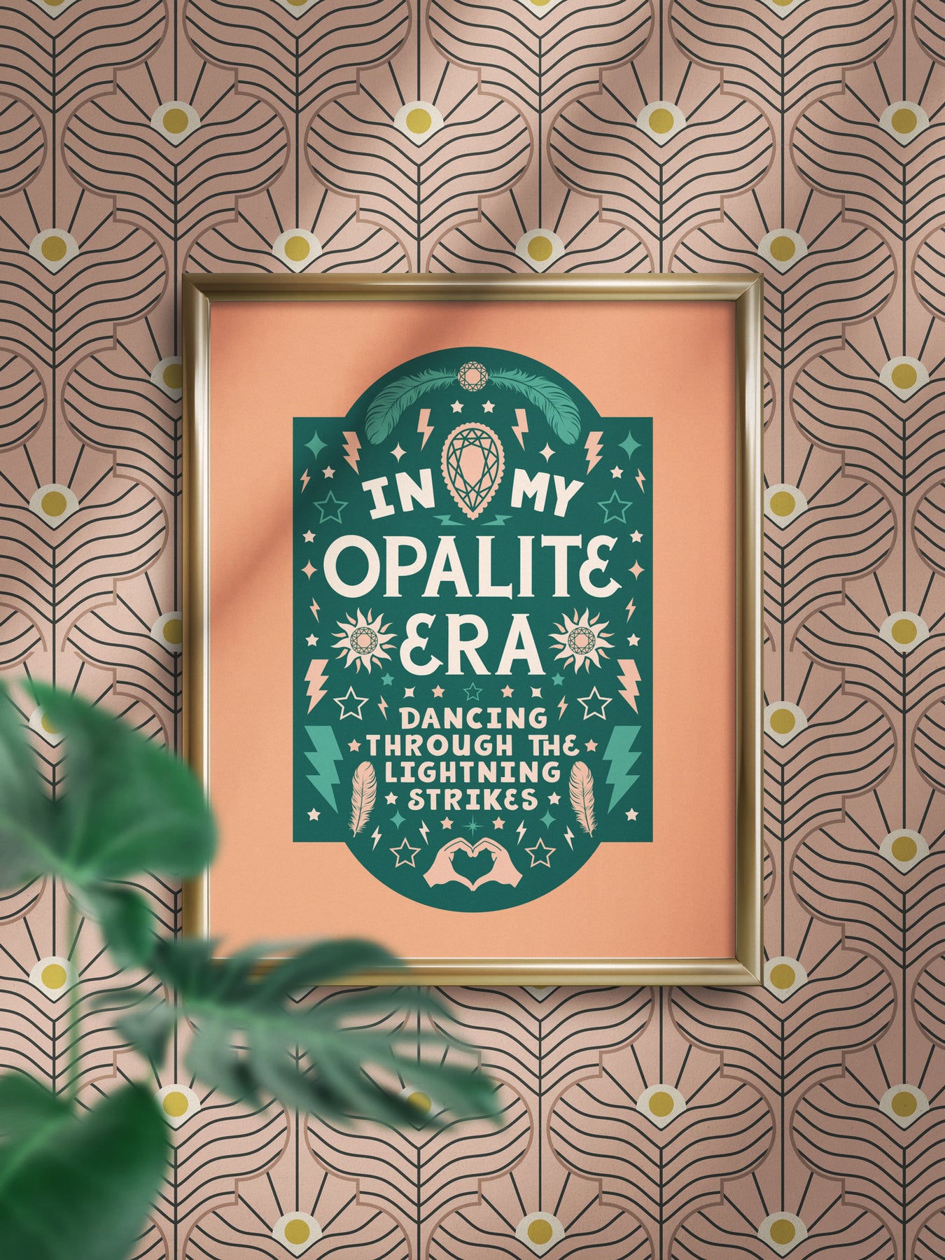Do your walls KNOW you're a Swiftie? Leave NO room for chance with our TLOAS themed wall art print, featuring the phrase, "In my opalite era, dancing throught the lightning strikes" surrounding by hand-illustrated showgirl-themed icons, like gems, diamonds, feathers and lightning bolts. Perfect wall art (or gift) for any Swiftie!